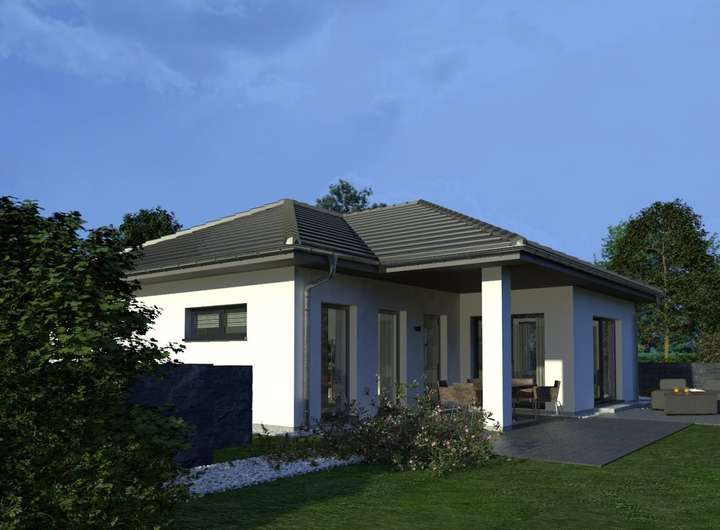 Wählen Sie auch bei diesem Bungalow zwischen Walm- und Flachdach.