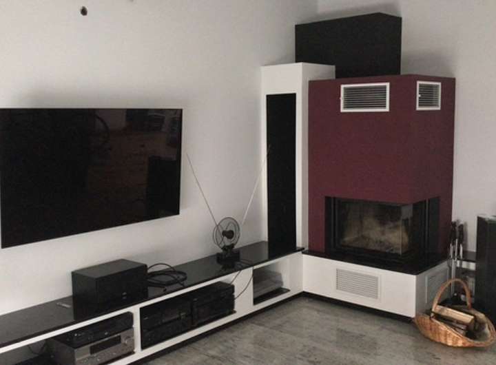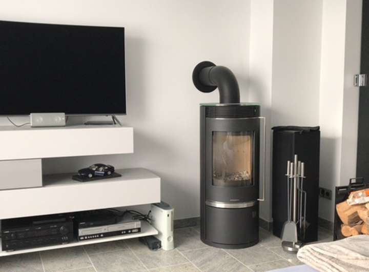 Primäre Energiequelle ist Holz über einen wasserführenden Heizkamin im Wohnzimmer. Ergänzung über eine neue Brennwerttherme.