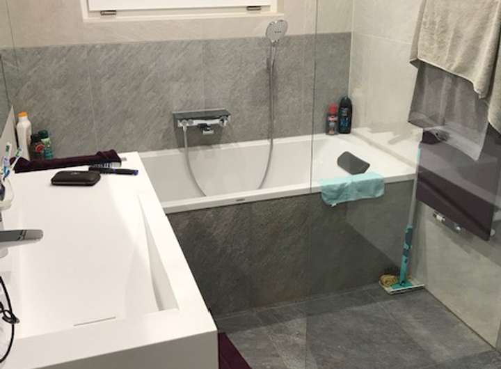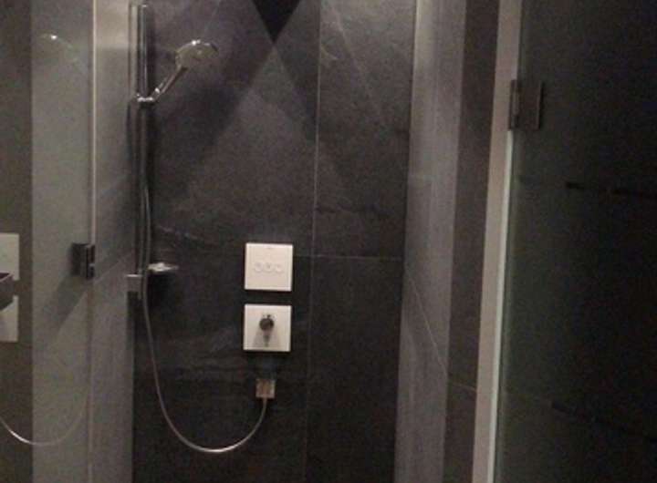2 hochwertige Bäder mit Designermobiliar und hochwertigen Armaturen. 2 großzügige bodenebene Duschen mit Handbrause und Regenwasserdusche. 1,90 m Hösch-Badewanne.