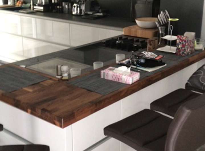 Hochwertige Next-125 Küche mit 125 cm Auszügen. Alle Geräte Miele. 3-fach Herd (Gas, Induktion, Teppanyaki) und zwei integrierten Dunstabzügen. (NP ca. 70k)