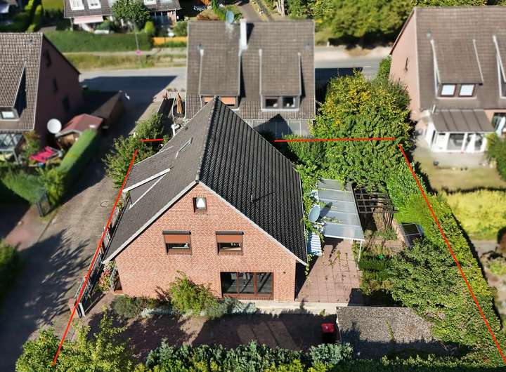 Das Haus wurde in massiver Bauweise mit rotem Verblendmauerwerk errichtet, ist voll unterkellert und verfügt über fünf reguläre Zimmer sowie zwei zusätzliche Räume im ausgebauten Dachgeschoss.