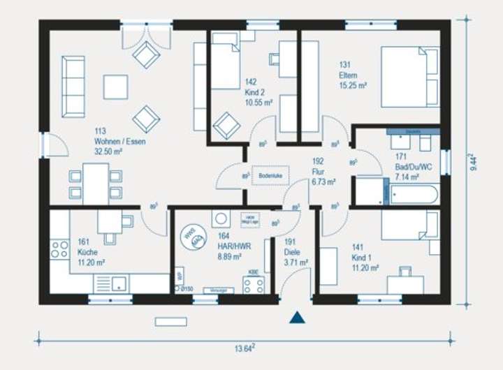 Das Lifetime 3 präsentiert sich als ideales Zuhause, das komfortables Wohnen auf einer einzigen Ebene ermöglicht. Es vereint die Übersichtlichkeit einer Wohnung mit dem Raumgefühl eines echten Heims, sodass jedes Familienmitglied seinen persönlichen Lieblingsplatz finden kann. Der clevere Grundriss demonstriert durchdachte Planung, die von einem großzügigen Essbereich in der Wohnküche bis hin zu flexiblen Einrichtungselementen reicht, die Ihre kreativen Ideen perfekt umsetzen. Optimal für kleine Grundstücke geeignet, bietet dieses Haus dennoch ausreichend Platz zum Wohlfühlen.