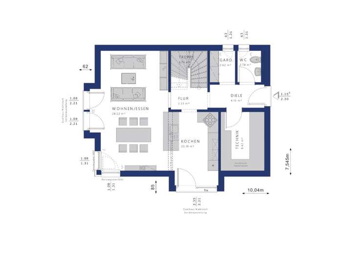 - Ausführung als förderfähiges Effizienzhaus 55, nach Ihrer Wahl selbstverständlich auch als Effizienzhaus 40 oder 40 plus,