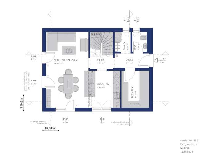 - Inklusive Bodenplatte mit Perimeterdämmung des Sockels