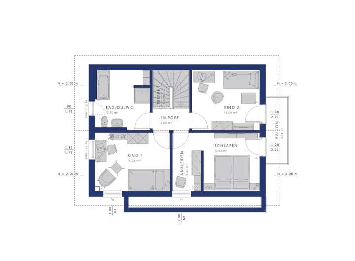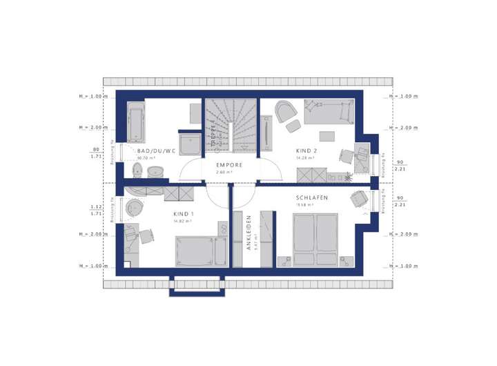 ein zusätzliches Homeoffice, das sich auch als Multifunktionsraum nutzen lässt. Das Dachgeschoss bietet Raum für Ihr