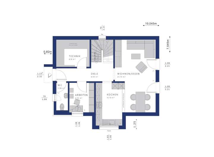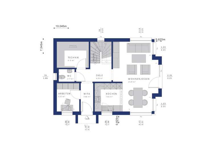 Dem Windfang schließt sich in unserem EDITION 123 eine großzügige Diele an, die direkt in den Wohnbereich führt.