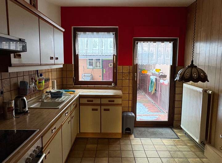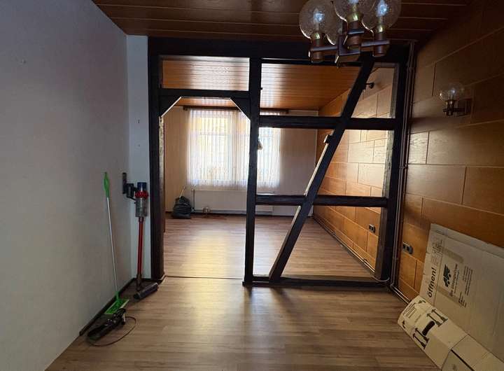 Teilkeller, Nebenräume auf dem Hof, neue Gasheizung, Holz-Iso Fenster (U-Wert 2,70) mit Rollladen, Laminatböden, Bad mit Dusche, Dach gedämmt (12 cm).