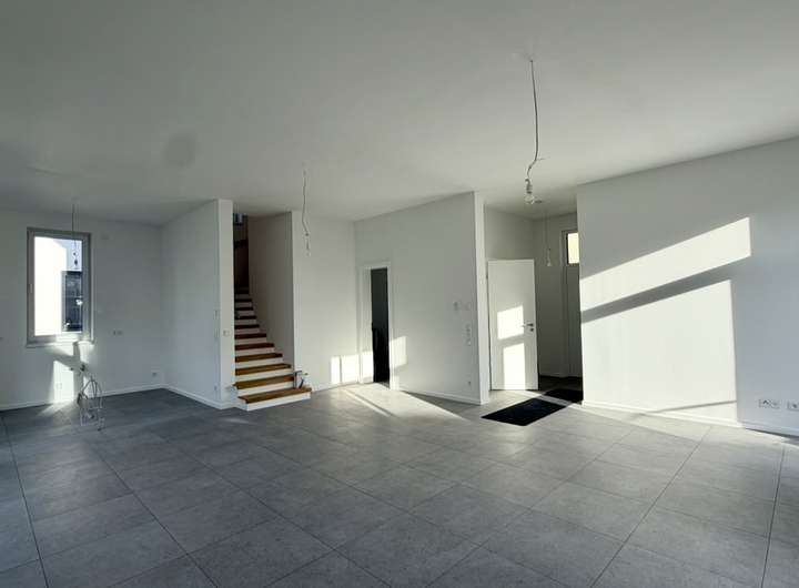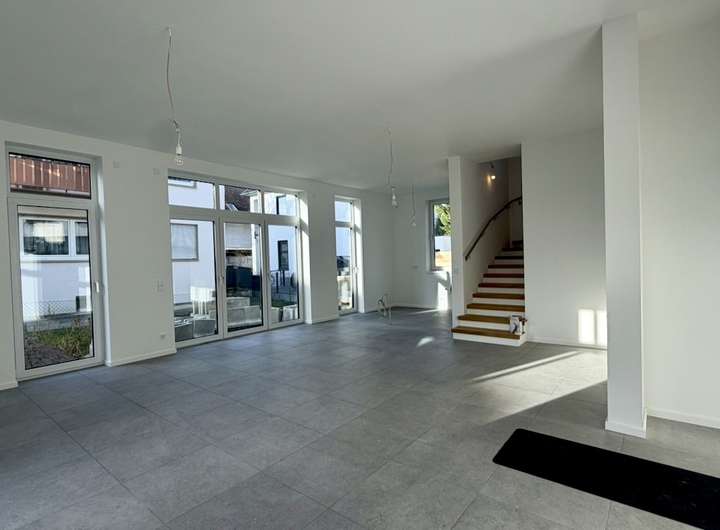 Dieses moderne, freistehende Einfamilienhaus vereint zeitgemäße Architektur, großzügige Raumkonzepte und eine hochwertige Ausstattung und bietet ideale Voraussetzungen für Familien mit erhöhtem Platzbedarf. Das Grundstück wurde im Jahr 2019 erworben, der Baubeginn erfolgte 2020 mit der Erstellung des Rohbaus. Anfang 2022 kam es aufgrund finanzieller Schwierigkeiten des Bauträgers zu einem vorübergehenden Baustopp. Zu diesem Zeitpunkt befand sich das Gebäude bereits in einer vollständig geschlossenen, dichten Gebäudehülle. Eine umfangreiche Fotodokumetation ist vorhanden. Ab Mitte 2022 wurden sämtliche Bauleistungen in Eigenregie neu vergeben und das Haus konsequent und qualitätsbewusst fertiggestellt. Der Verkauf erfolgt aus persönlichen Gründen aufgrund der insgesamt belastenden Situation der vergangenen Jahre sowie im Hinblick auf die familiäre Situation und die schulischen Bedürfnisse der Kinder. Das Haus verfügt über eine Wohnfläche von ca. 175 m² und steht auf einem ca. 274 m² großen Grundstück. Zwei Außenstellplätze sind vorhanden. Beheizt wird das Gebäude über eine moderne Wärmepumpe, eine Photovoltaikanlage kann problemlos nachgerüstet werden. Eine Vorbereitung für eine Wallbox ist ebenfalls bereits vorhanden. Fußbodenheizung in allen Wohnräumen, hochwertige Eichenparkettböden sowie großformatige, helle Fliesen unterstreichen den gehobenen Wohnkomfort. Elektrische Rollläden sind in sämtlichen Fenstern installiert, die dreifache Verglasung sorgt für eine sehr gute Energieeffizienz und angenehmes Raumklima. Aufgrund der Nähe zum Ried wurde bewusst auf eine Unterkellerung verzichtet. Im Erdgeschoss empfängt Sie ein sehr großzügiger, lichtdurchfluteter Wohn- und Küchenbereich mit zahlreichen Fensterflächen und moderner Offenheit – ein zentraler Lebensmittelpunkt für die ganze Familie. Ergänzt wird diese Ebene durch einen Hauswirtschaftsraum, einen kleinen Abstellraum mit Garderobenfunktion sowie ein Gäste-WC. Das Obergeschoss bietet drei gut geschnittene Schlafzimmer, ein separates Ankleidezimmer beziehungsweise Büro sowie ein großzügiges Hauptbad mit Badewanne und bodentiefer Dusche. Im Dachgeschoss befindet sich ein weitläufiges Atelierzimmer mit eigenem Duschbad, das sich ideal als Elternbereich, Rückzugsort oder Arbeitsatelier nutzen lässt. Die vielen Fensterflächen sorgen in allen Geschossen für außergewöhnlich helle Räume und ein freundliches Wohnambiente. Die moderne Architektur verleiht dem Haus eine klare, zeitlose Linie und hebt es deutlich von konventionellen Einfamilienhäusern ab. Das Objekt ist bis auf wenige kleinere Arbeiten im Außenbereich fertiggestellt und kann innerhalb weniger Wochen übergeben werden. Dieses freistehende Einfamilienhaus bietet viel Platz, hochwertige Ausstattung und flexible Nutzungsmöglichkeiten – ideal auch für die größere Familie. Überzeugen Sie sich selbst von diesem besonderen Angebot und vereinbaren Sie noch heute einen Besichtigungstermin mit unseren freundlichen Beratern.