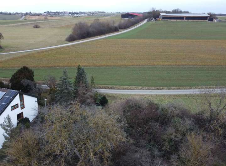 Kurzum: beste Lage in Wimsheim. Hinten Felder, vorne Sonne, da an einem Südhang gelegen. Die Uhlandstr. ist relativ eine ruhige Anwohnerstrasse.