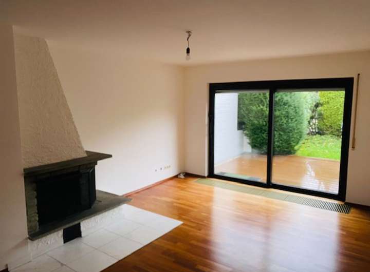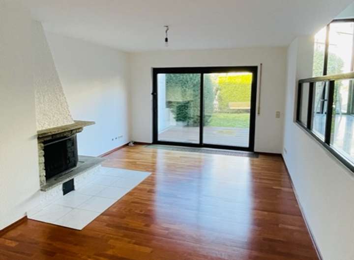 Der große und lichtdurchflutete Küchen- Ess- und Wohnbereich mit Kamin und angrenzender Terrasse bietet besonders durch das unterschiedliche Höhenniveau und die indirekte Teilung reichlich Platz für einen großen Esstisch und eine gemütliche Wohnlandschaft.