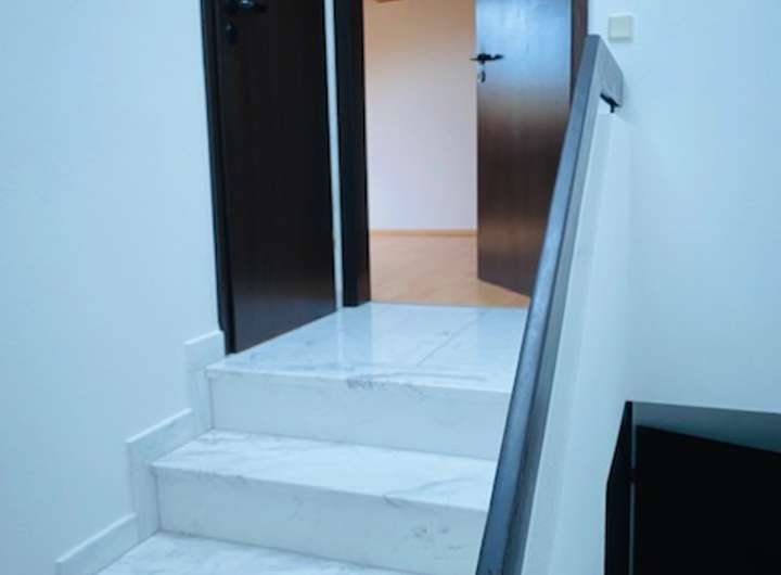 Die Böden des Wohn-/ der Schlaf-/ und Kinderzimmer sind mit Echtholzparkett ausgelegt. Die Flure sowie der Küchenbereich verfügen über einen weißen und exklusiven Marmorboden. Die Badezimmer sind mit hellen Fliesen ausgestattet.