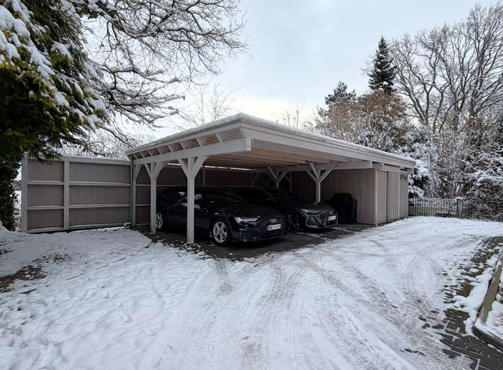 -Massive Carport-/Schuppenanlage mit Stellplätzen für zwei Fahrzeuge