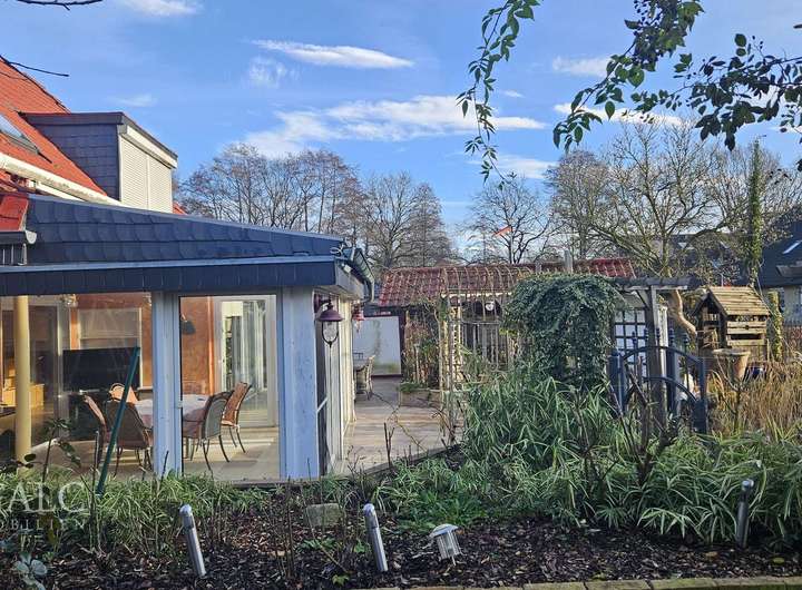 Betreten Sie dieses Einfamilienhaus, so führt Sie der Weg durch einen Windfang direkt durch den Flur in das großzügige, helle Wohnzimmer mit einem Blick, durch bodentiefe Fenster, auf den Teich und das sehr gepflegte große Grundstück. Die rechte Hälfte des Hauses ist der geräumigen Einbauküche, mit dem sonnendurchflutetem Wintergarten vorbehalten. Große Fenster und Schiebeelemente lassen Ihren Blick in den Garten wandern und laden zum Entspannen ein.