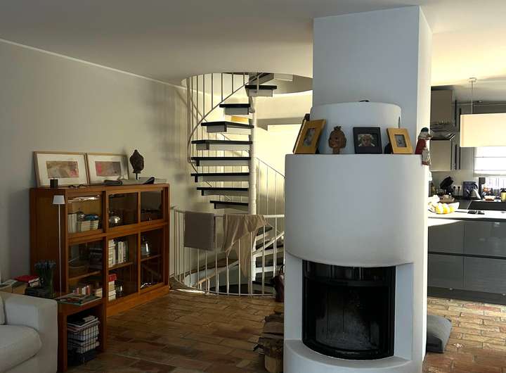 Das Haus überzeugt durch einen offenen, großzügigen Grundriss und eine besondere Wohnatmosphäre. Die Geschosse sind über eine großzügige Wendeltreppe miteinander verbunden.
