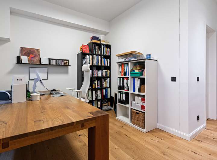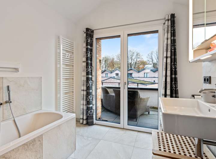 Die Immobilie verfügt über zwei modern gestaltete Bäder, ausgestattet mit erstklassigen Armaturen und geschmackvollen Materialien. Maßgefertigte, hochwertige Einbauten fügen sich perfekt in das Wohnkonzept ein.