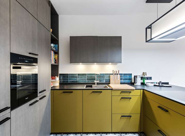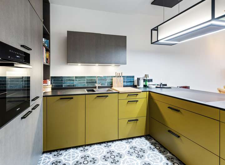 offene Miele-Einbauküche mit höhenverstellbarer Berbel-Abzugshaube
