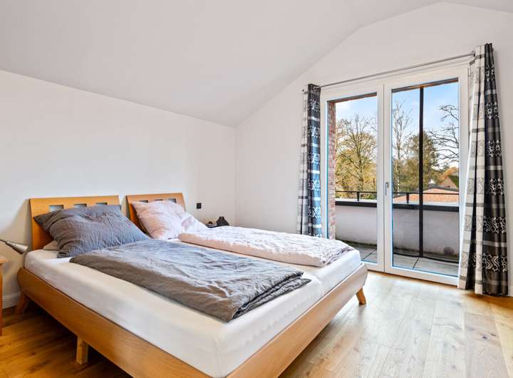 Der private Außenbereich im Erdgeschoss lädt ebenfalls zu entspannten Stunden ein – ein idealer Ort, um den Tag ausklingen zu lassen.