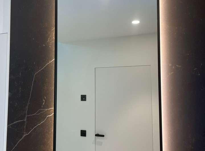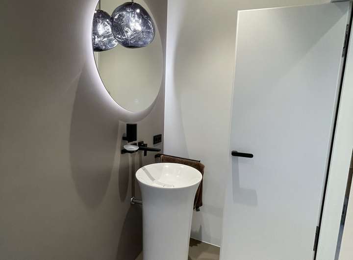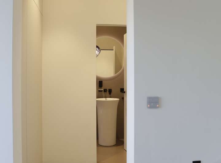 - Wandbündige Türen und Sockelleisten („clean Look“)