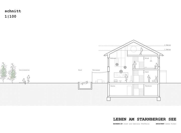Für das Grundstück liegt bereits ein durchdachter Architektenentwurf für ein exklusives und großzügiges Einfamilienhaus vor. Die Planung umfasst eine moderne, lichtdurchflutete Architektur mit offenen Wohnbereichen, großzügigen Fensterfronten und einer perfekten Verbindung zwischen Innen- und Außenraum. Besondere Highlights wie eine Galerie, eine geräumige Ankleide im Hauptschlafzimmer sowie ein eigener Wellnessbereich im Untergeschoss machen dieses Konzept zu einem echten Wohntraum.