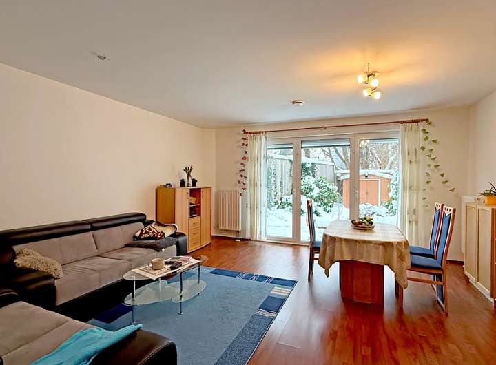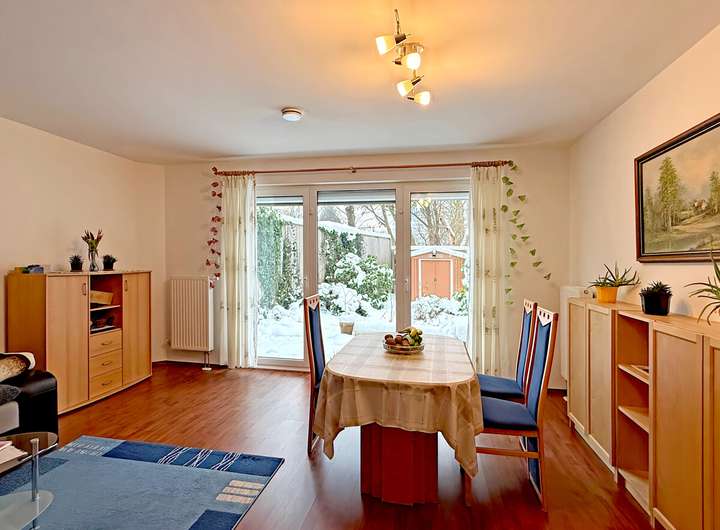 Die Dachterrasse und der Garten (Sondernutzungsrecht) ergänzen das Haus um private Außenflächen, die den Wohnraum sinnvoll erweitern und den Tagesablauf um zusätzliche Ebenen bereichert. Für Ordnung und praktische Abläufe steht ein Keller zur Verfügung, der Stauraum und Nutzfläche klar vom Wohnen trennt.