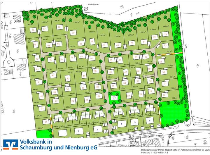 Am Waldrand der Rintelner Nordstadt entsteht ein modernes Wohngebiet für Wohnwünsche jeder Art. Sie können die Grundstücke mit Einfamilienhäusern, Doppelhäusern sowie Mehrfamilienhäusern bebauen – private Bauherren und Investoren finden hier optimale Voraussetzungen für ihr Vorhaben in Bestlage. Die Fläche umfasst insgesamt 78 Baugrundstücke in Größen zwischen ca. 340 m² bis über 2.000 m². Diese können, nach der erfolgten Erschließung, ab Sommer 2026 bebaut werden.