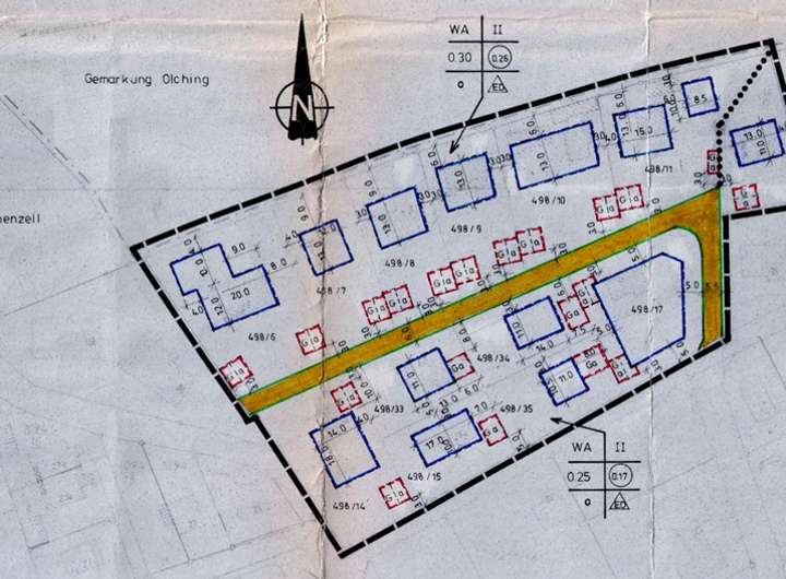 Die Festsetzungen aus dem Bebauungsplan schreiben maximal 2 Vollgeschosse mit einer maximalen Wandhöhe von 6,70m vor. Die Geschossflächenzahl von 0,26 lässt eine mögliche Geschossfläche von circa 230m² zu. Beim Bau eines „KfW-Effizienzhaus 40“ weist die Gemeinde Gröbenzell zusätzlich einen Bonus auf die mögliche Geschossfläche in der textlichen Festsetzung des Bebauungsplanes aus. Im vorliegenden Fall ergeben sich daraus circa 20m² Geschossfläche mehr. Damit bietet das Grundstück eine klare, planungsrechtlich gesicherte Grundlage für eine moderne und wirtschaftlich sinnvolle Bebauung.