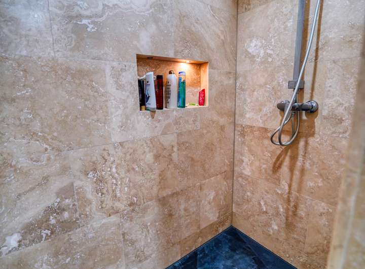Ein erstes Badezimmer ist mit WC und Dusche ausgestattet und eignet sich ideal als Gäste- oder Alltagsbad.