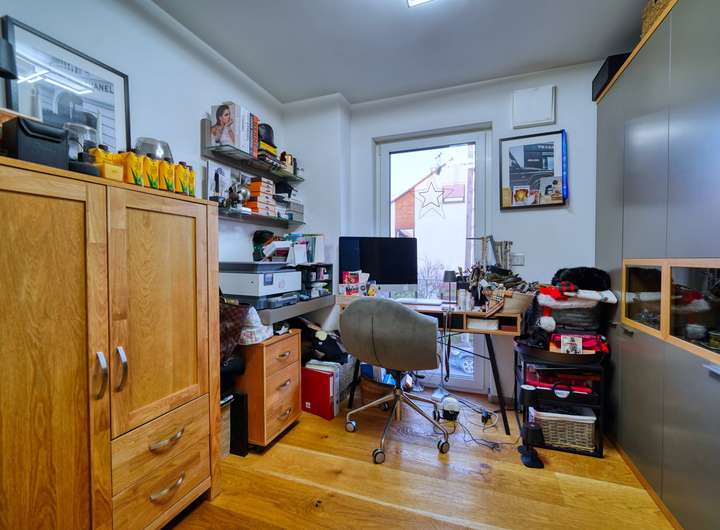 Die insgesamt 8 Zimmer des Hauses bieten ausreichend Platz für Ihre Familie und Gäste. Neben den 4 Schlafzimmern gibt es zwei Badezimmer, die für morgendliche Entspannung sorgen. Die drei Etagen des Gebäudes sind durchdacht gestaltet und lassen genügend Raum für individuelle Gestaltungsmöglichkeiten. Genießen Sie den Ausblick von den Balkonen oder verbringen Sie gemütliche Stunden auf der Terrasse.