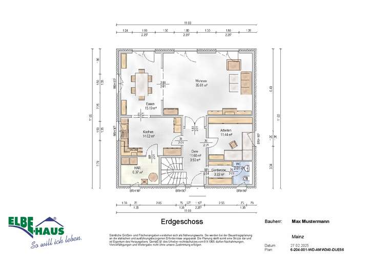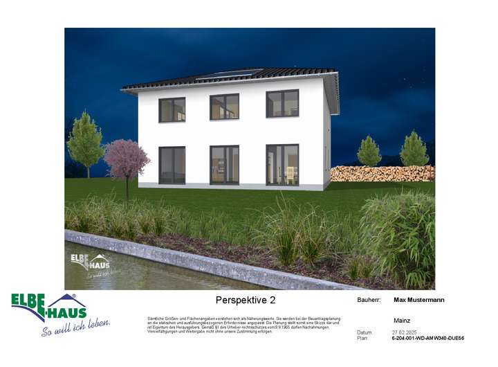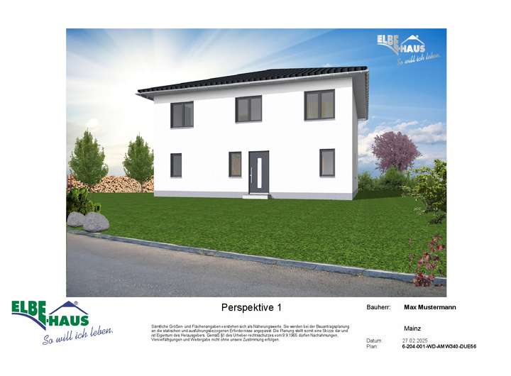 Dieses innovative Elbe-Haus® wird in massiver Bauweise von qualifiziertem Fachpersonal errichtet. Wir planen und projektieren nach Ihren Vorstellungen und Wünschen und somit ist wirklich jedes Haus einzigartig. Beachten Sie bitte, dass das abgebildete Haus lediglich ein Bebauungsbeispiel ist. Das Grundstück kann unter Berücksichtigung der örtlichen Bauvorschriften mit Ihrem Wunschhaus von Elbe-Haus® errichtet werden.