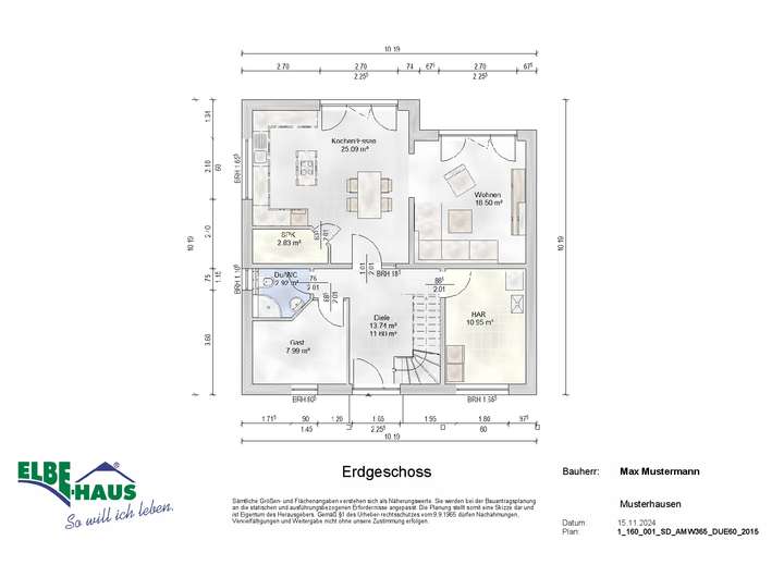 Dieses innovative Elbe-Haus® wird in massiver Bauweise von qualifiziertem Fachpersonal errichtet. Wir planen und projektieren nach Ihren Vorstellungen und Wünschen und somit ist wirklich jedes Haus einzigartig. Beachten Sie bitte, dass das abgebildete Haus lediglich ein Bebauungsbeispiel ist. Das Grundstück kann unter Berücksichtigung der örtlichen Bauvorschriften mit Ihrem Wunschhaus von Elbe-Haus® errichtet werden.