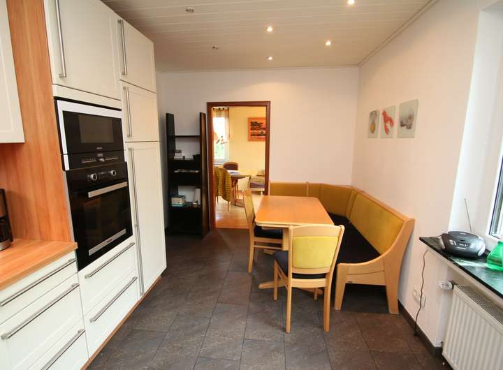 Die Küche ist ein Highlight für Hobbyköche: Eine hochwertige Nolte-Einbauküche aus 2011 mit modernen Geräten, darunter erneuerter Backofen und Spülmaschine, sorgt für Komfort und Freude beim Kochen. Ergänzt wird das Erdgeschoss durch ein 2017 renoviertes Duschbad mit elektrisch betriebener Fußbodenheizung und ein praktisches Büro, ideal für Homeoffice oder kreative Projekte.