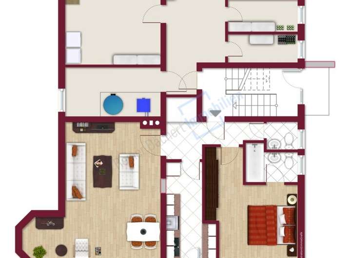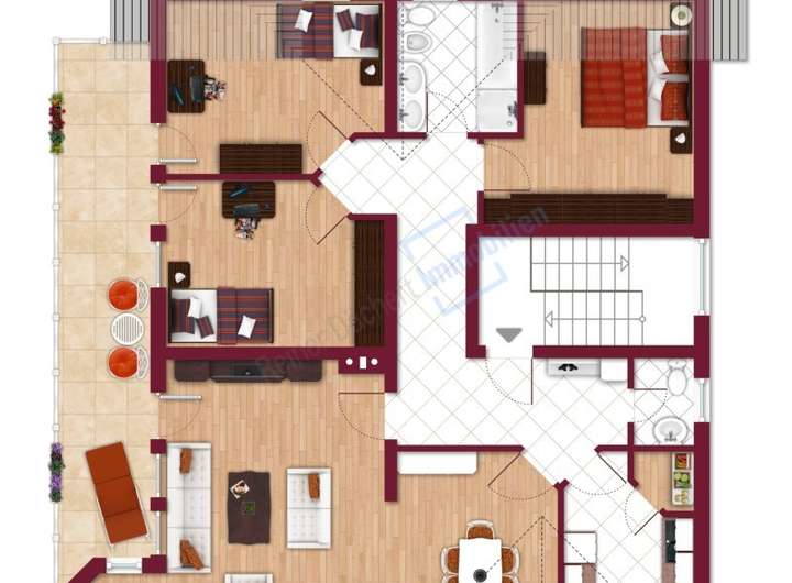 Die tatsächliche Bauausführung, Genehmigungsstände u.Ä. gehen daraus nicht hervor. Die aus den Grundrissen hervorgehenden Informationen haben keinen Anspruch auf Vollständigkeit oder Richtigkeit und sind nicht rechtsverbindlich.