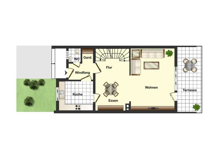 •Praktischer Außenzugang vom Garten