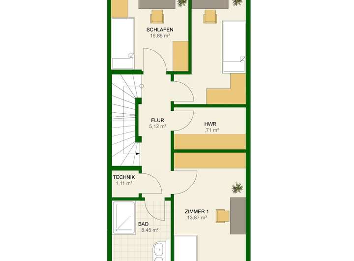 Ihr Haus hat helle, lichtdurchflutete und großzügige 4-5 Zimmer auf 2 Vollgeschossen + Dachgeschoss mit Dachterrasse und insgesamt 145 m² Wohnfläche. WC und Bad haben Tageslichtfenster und moderne Sanitärobjekte.