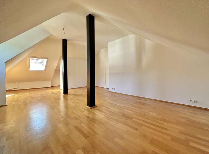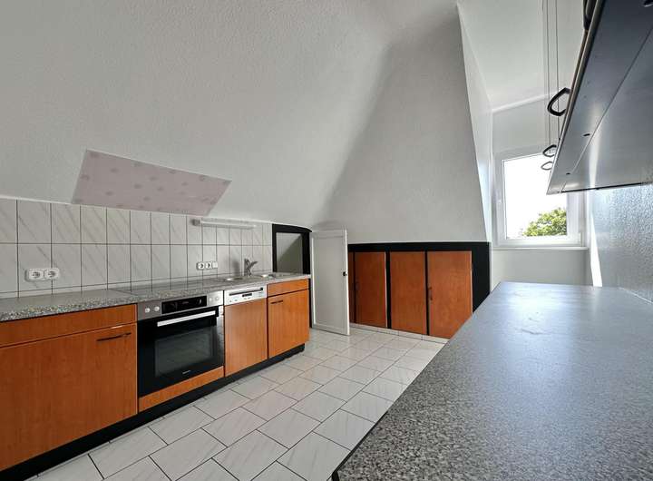Die Dachgeschosswohnung mit 3 Zimmern bietet auf ca. 76,21 m² Wohnfläche ein Tageslichtbad mit Badewanne und Dusche, ein Arbeits-/ Kinderzimmer, ein großzügiges Wohnzimmer, eine Küche sowie ein Schlafzimmer. Weiterer Stauraum ist im Bereich des Kniestocks vorhanden.