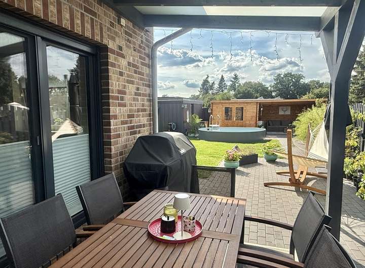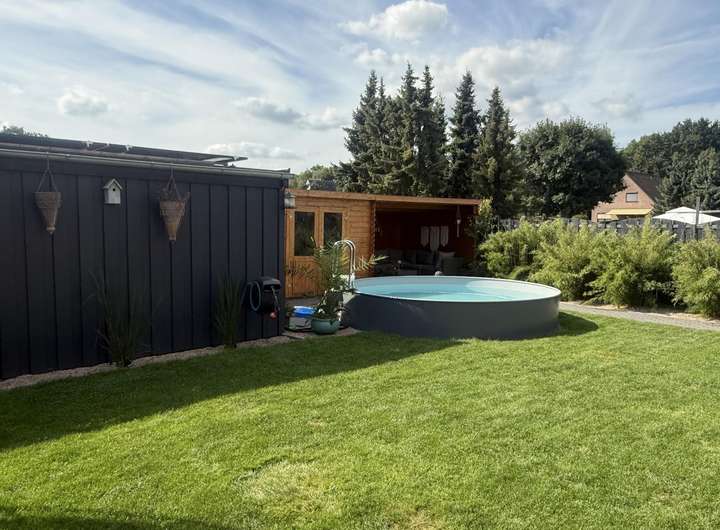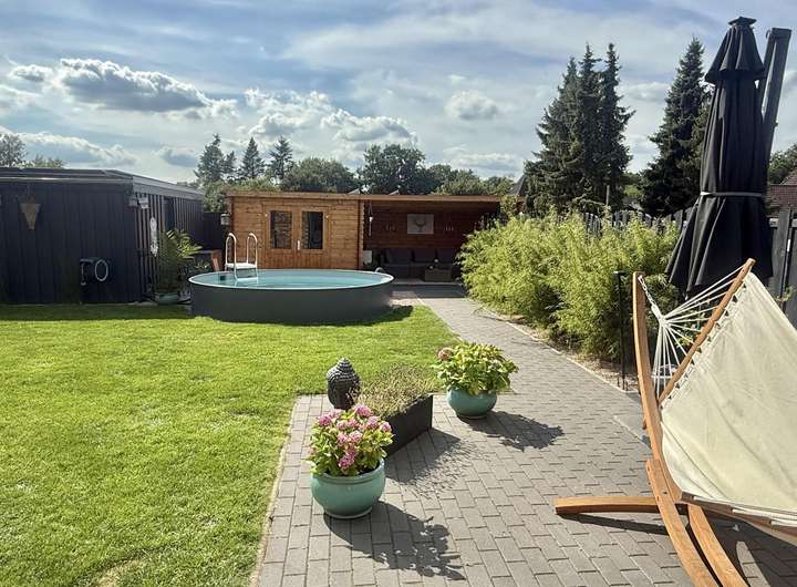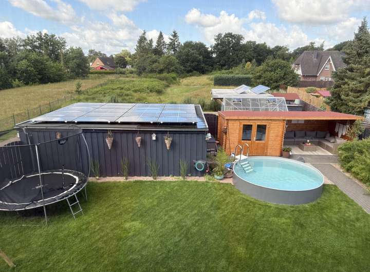 Das Grundstück ist ein echtes Highlight: Ein gepflegter umzäunter Garten mit Pool, Gartenhaus und Brunnen samt Pumpe sorgen für entspannte Freizeitmomente und gleichzeitig für eine nachhaltige Gartenbewässerung. Die überdachte Terrasse und die Lounge-Ecke im Gartenhaus bieten Ruhe oder genügend Platz bei Gartenfesten. Der Doppelcarport mit integrierter Photovoltaikanlage rundet das Angebot ab und vereint Komfort mit zukunftsorientierter Energiegewinnung.