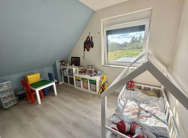 Das Obergeschoss bietet Ihnen optimal geschnittene Zimmer, die sich flexibel als Schlaf-, Kinder- oder Arbeitszimmer nutzen lassen. Durchdachtes Wohnen mit klaren Linien und viel Tageslicht steht im Vordergrund.