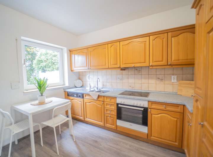 Der Mittelpunkt des Hauses befindet sich im Erdgeschoss: Hier gehen Kochen, Essen und Wohnen harmonisch ineinander über. Die Küche bietet ausreichend Platz für gemeinsames Zubereiten von Mahlzeiten, während der angrenzende Wohnbereich mit seiner hellen Atmosphäre zum Verweilen einlädt. Ein direkter Zugang führt auf die weitläufige Terrasse, die sich ideal für entspannte Stunden im Freien oder gesellige Zusammenkünfte eignet.