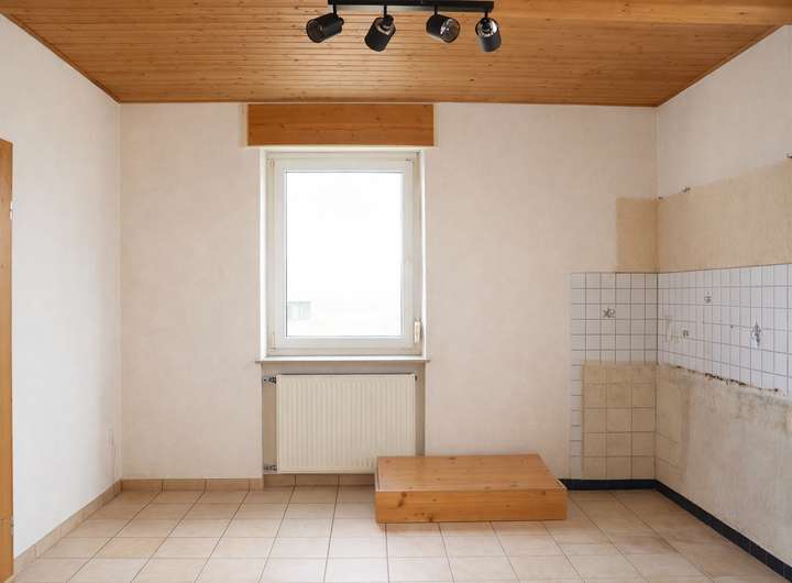 Hier befindet sich das Herzstück des Hauses, Wohnzimmer, Küche sowie ein zusätzliches, separates Zimmer (ideal als Büro oder Gästezimmer). Das Tageslichtbadezimmer ist mit einer Badewanne ausgestattet.