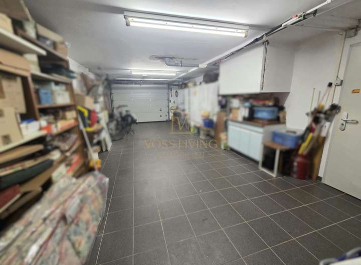 Sehr vorteilhaft ist die innerhalb des Hauses liegenden Garage in der 2 Autos hintereinander abgestellt werden können. Dies bietet ihnen zusätzlichen Stellraum auch für Fahrräder, Motorräder und Komfort beim Ausladen der Einkäufe.