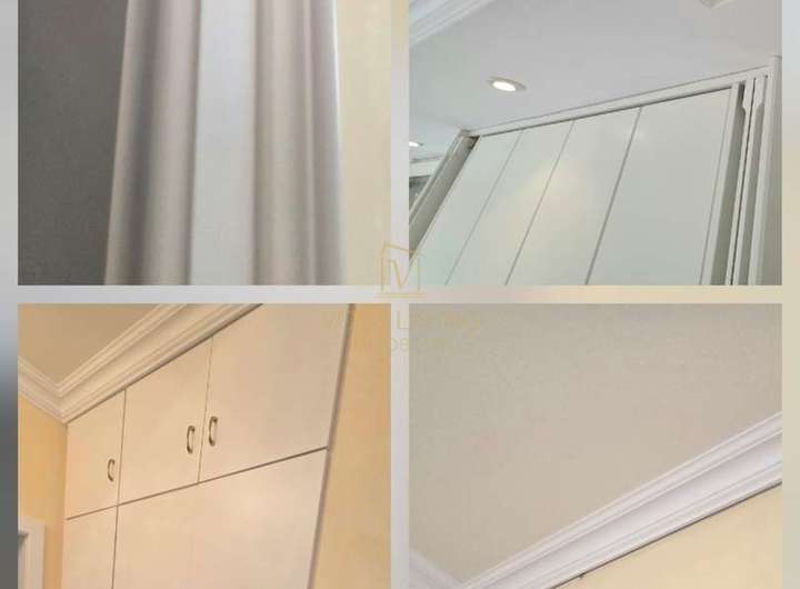 - Galerie-Schienen hinter den Deckenleisten (für das Aufhängen von Gemälden und Kunstwerken)