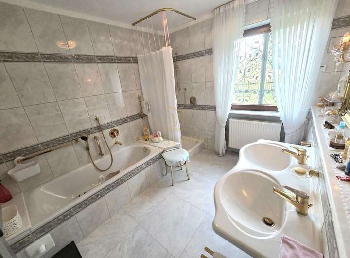 - großes Badezimmer mit Doppelwaschbecken und Tageslicht