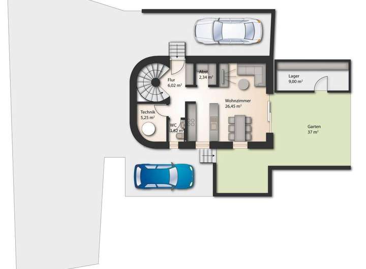 2 Autoabstellplätze an der westlichen Grundstücksseite