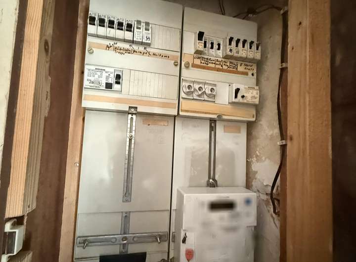 - Elektro-Verteilung mit Kippsicherungen (Fehlerstromschalter ist installiert)