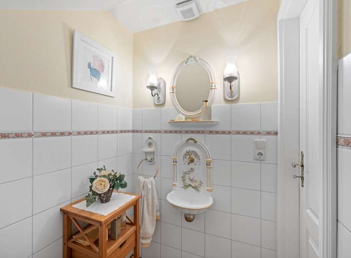 - Gäste-WC mit französischer Keramikausstattung und Hauswirtschaftsraum im Erdgeschoss
