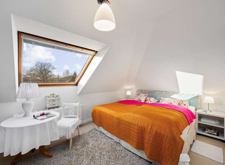 Eine weitere stilvolle Holztreppe führt ins ausgebaute Dachgeschoss. Hier eröffnet sich ein großzügiges Zimmer, welches als Büro oder auch als Gäste-Zimmer genutzt werden kann. Für Bequemlichkeit sorgt ein kleines Gäste-WC. Ebenfalls ist ein weiteres Zimmer vorhanden, welches als Abstellraum genutzt werden kann.