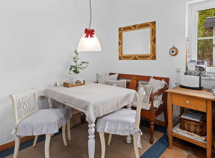 Die Immobilie wird über einen gepflegten Eingangsbereich mit einer Massivholzeingangstür betreten. Über das Entrée lässt sich die stilvolle Landhausküche mit Essbereich, das Gäste-WC, der Hauswirtschaftsraum sowie der Wohnbereich erreichen. Der Wohnbereich bietet mit ca. 41 m² Platz für die ganze Familie und sorgt mit bodentiefen Fenstern für eine helle Atmosphäre. Ein besonderes Highlight stellt der schöne Erker mit großen Panoramafenstern dar. Der Wohnbereich gewährt Zugang zur westlich ausgerichteten Terrasse und dem Garten. Durch seine ruhige und rückwärtige Lage eignet sich der Garten optimal für Kinder und Feste mit Freunden.