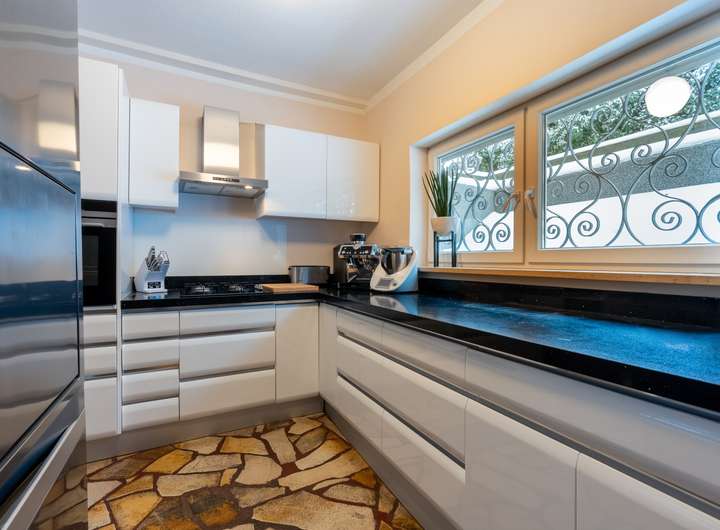 Dieses Einfamilienhaus überzeugt durch Großzügigkeit, Qualität und Komfort und bietet mit seiner gelungenen Kombination aus klassischen Naturstein-Elementen und moderner Ausstattung ein außergewöhnliches Wohngefühl.