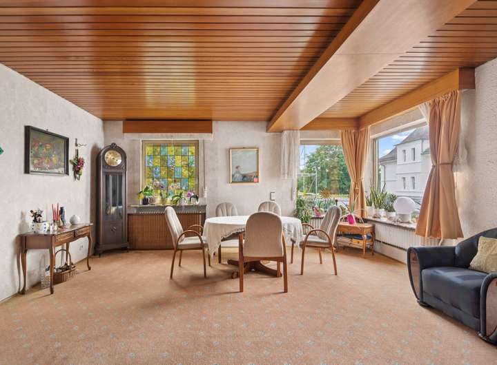 Im Erdgeschoss des ursprünglich 1936/1937 errichteten Zweifamilienhauses steht Ihnen zunächst ein Entreé zur Verfügung, welches in die großzügige Wohnküche und den gut belichteten Wohnbereich führt. Über einen zentralen Flur erschließen sich die weiteren Zimmer und Bäder dieser Etage. Zudem hat man Zugang zum eingewachsenen Garten, der an einen privaten Park grenzt und mit wunderschönem alten Baumbestand gesäumt ist. Auf dieser Etage stehen insgesamt 5 Zimmer zur Verfügung, inklusive dem rund 32 m2 großen Wohnzimmer.