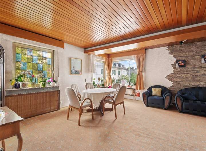 Über den zentralen Eingangsbereich gelangen Sie über das Treppenhaus in das erste Obergeschoss, welches neben 4 1/2 Zimmern, teilweise mit Badezimmer En-Suite, auch Zugang zu den großzügigen Balkonflächen bietet. Der gartenseitige Balkon verfügt über eine Fläche von über 50 m2 und ist mit dem wunderschönen Blick ins Grüne eine hervorragende Erweiterung des Wohnraums, welcher zum Entspannen und zum Genießen des Feierabends einlädt. Über das Treppenhaus gelangen Sie schließlich in das zweite Obergeschoss, welches als Vollgeschoss eine hervorragende Deckenhöhe bietet und sich sehr gut bspw. als dritte Wohneinheit abgrenzen ließe. Von dieser Etage aus gelangen Sie zudem in das Dachgeschoss, welches zusätzliche Staufläche bietet. Im Keller des Objekts befindet sich weitere Nutzfläche, die stetig ausgebaut wurde (Waschraum, Trockenraum und zahlreiche Abstellräume).